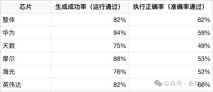 华为芯片在生成成功率上表现最优