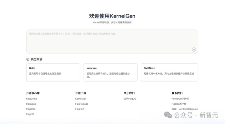 KernelGen 网站地址:https://kernelgen.flagos.io,用户在对话框里仅需输入自然语言、数学公式或是已有实现表达算子开发需求